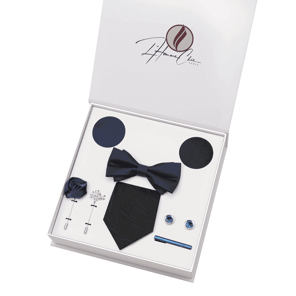 | Inclus dans le set | Boutons de manchette, Broche, Cravate, Deux pochettes, Épingle à cravate assortis, Nœud papillon |