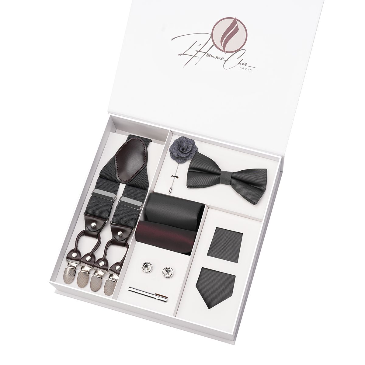 Set Cravate, Noeud-Papillon et Bretelle Gris Foncé