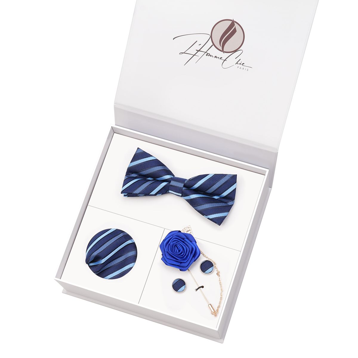 Set Noeud Papillon Assorti Bleu Marine Rayé