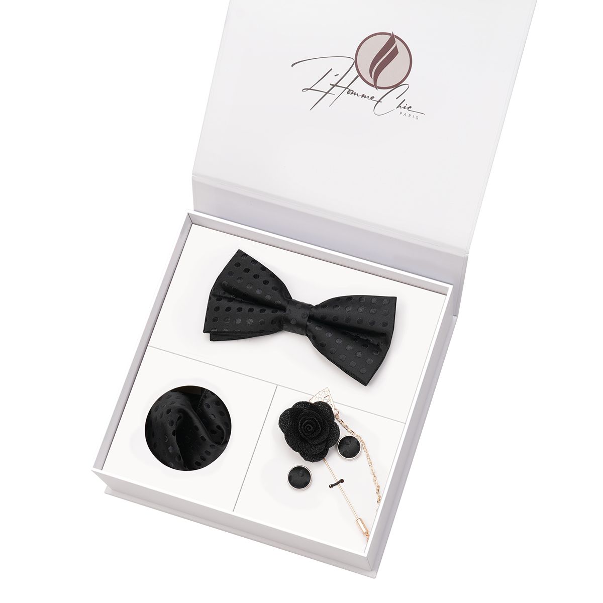 | Inclus dans le set | Boutons de manchette, Cravate, Deux pochettes, Épingle à cravate assortis, Nœud papillon |