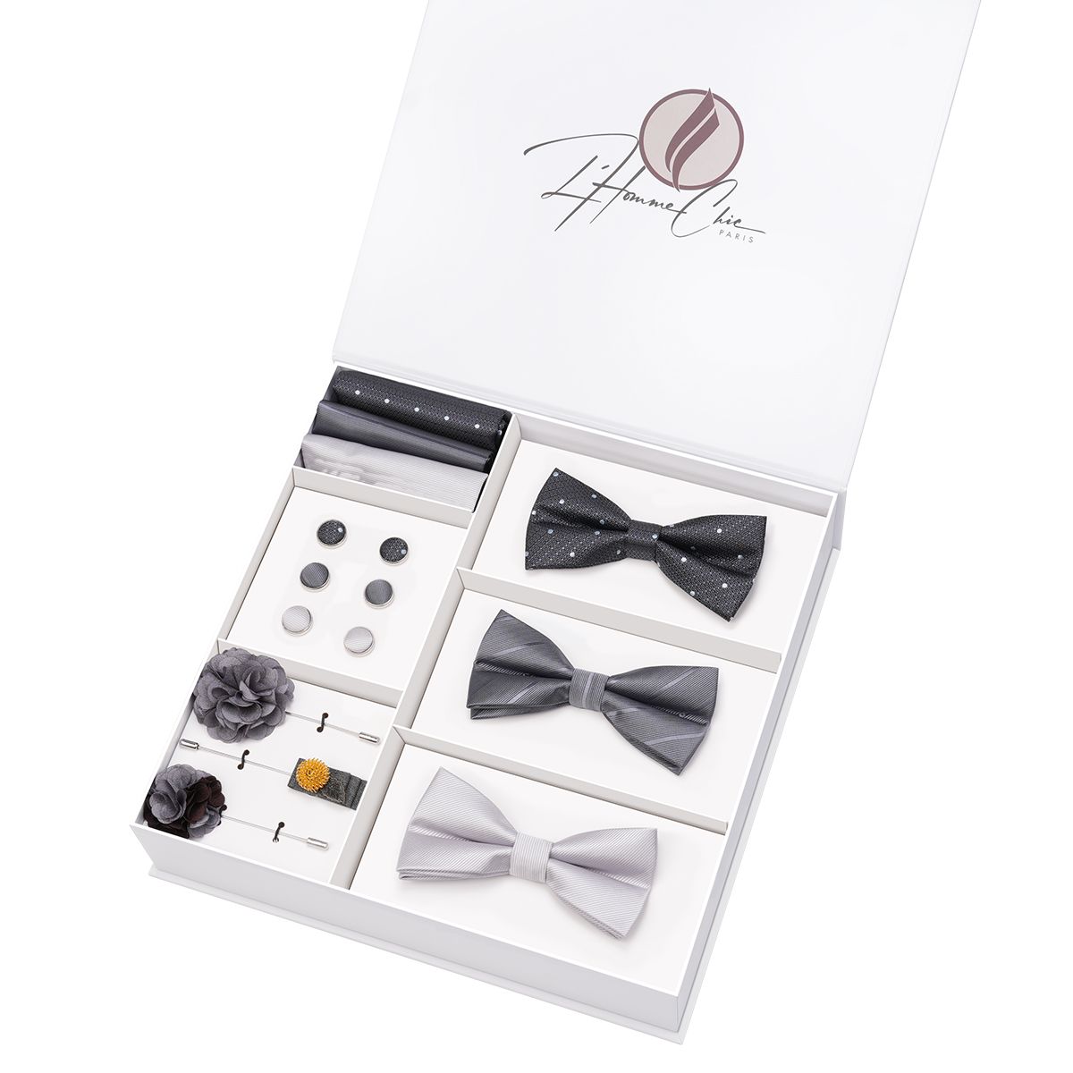 Set Noeud Papillon en Lot Gris (Uni, Rayure et à Pois)