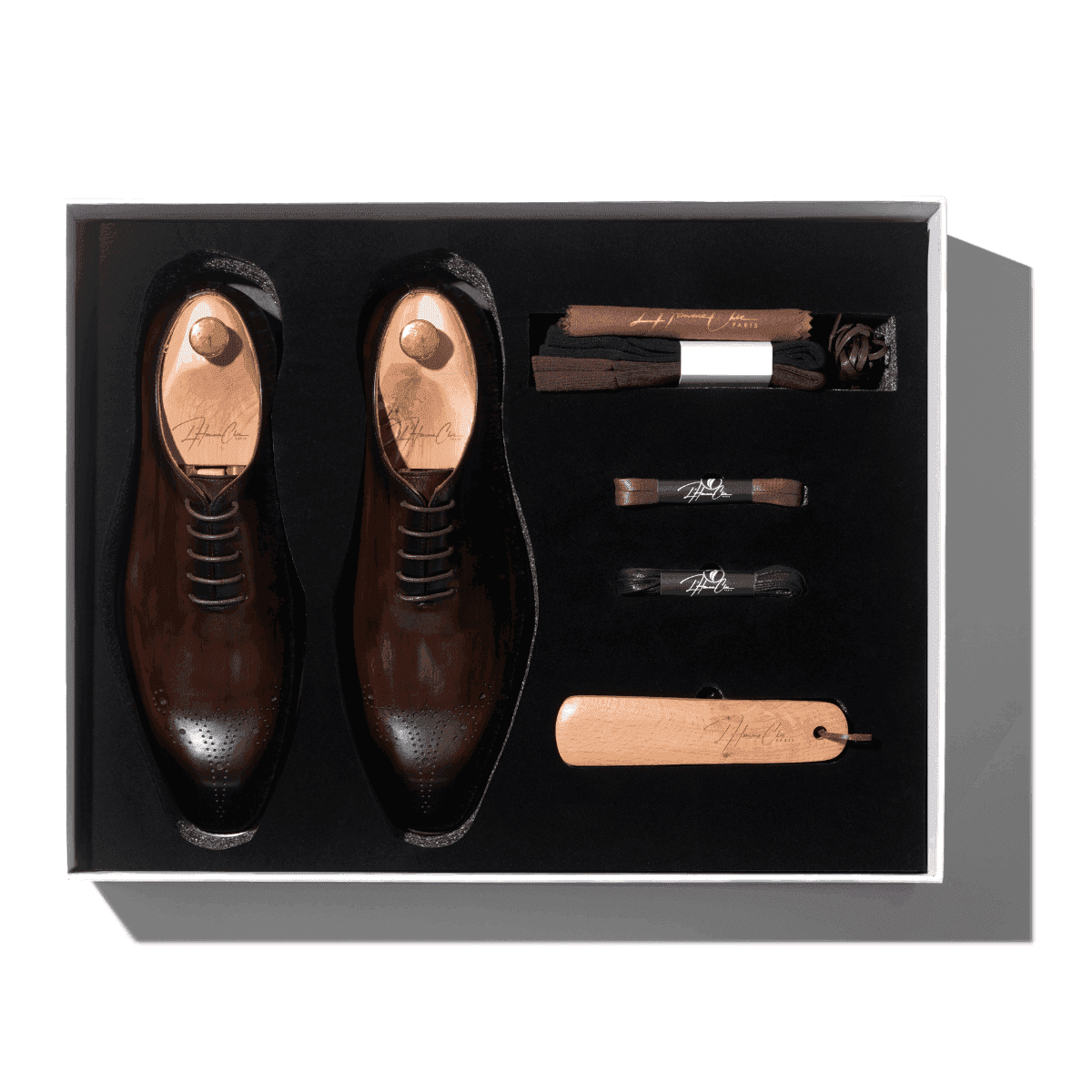 | Inclus dans le set | Chausse-pied en hêtre brut, Deux paires de chaussettes en bambou, Deux paires de lacets de rechange, Embauchoirs en cèdre rouge, Paire de chaussures |
