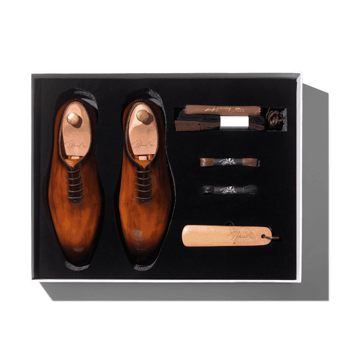 | Inclus dans le set | Chausse-pied en hêtre brut, Deux paires de chaussettes en bambou, Deux paires de lacets de rechange, Embauchoirs en cèdre rouge, Paire de chaussures |
