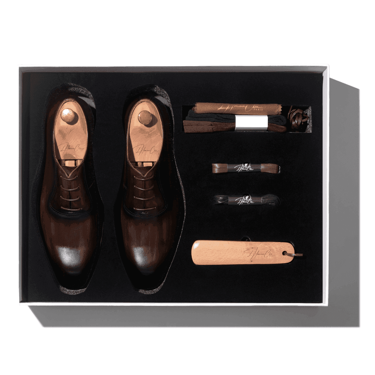 Découvrez l’excellence artisanale avec ce set de chaussures en cuir pleine fleur signé L’Homme Chic Paris. Conçu pour l’homme raffiné, ce set complet inclut une paire de chaussures de haute qualité en vachette pleine fleur, tant à l’extérieur qu’à l’intérieur, accompagnée d’accessoires de luxe : des embauchoirs en cèdre rouge, deux paires de chaussettes en bambou, deux paires de lacets de rechange et un chausse-pied en hêtre brut.